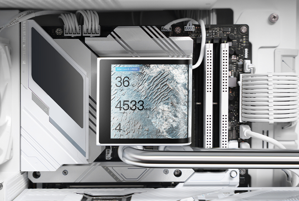 Positioned beneath the screen, the fan provides additional cooling to the motherboard's VRM, helping to improve power delivery stability and overall platform reliability.